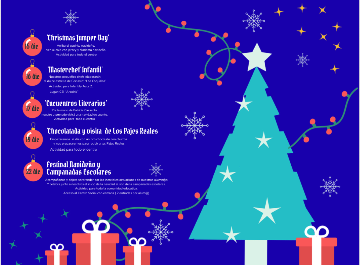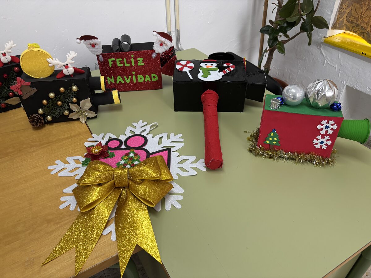 Nuestro cole está precioso con la decoración navideña que han realizado nuestros alumnos y alumnas con sus familias. En Infantil han hecho cámaras de vídeo y en primaria claquetas de rodaje, todas muy especiales decoradas para la Navidad. Agradecemos enormemente vuestra colaboración como siempre y pedimos disculpas si alguna se nos ha escapado para fotografiarla, hay tantas repartidas por el colegio que es posible que así haya podido ser. La próxima semana se presenta con mucha actividad navideña, no os lo perdáis.